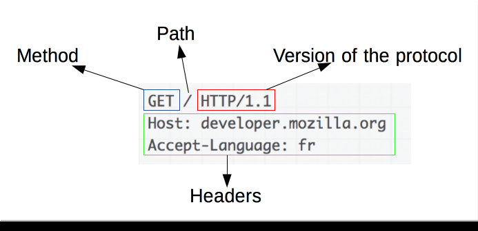 HTTP는 애플리케이션 레벨의 프로토콜로 TCP/IP 위에서 작동한다. HTTP는 상태를 가지고 있지 않는 프로토콜이며 다음 그림과 같이 메소드, 패치, 버전, 헤더, 바디로 구성된다.